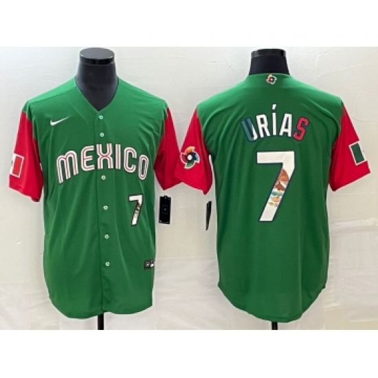 >Men's Mexico Baseball #7 Julio Urías 2023 Green World Baseball Classi Stitched Jersey