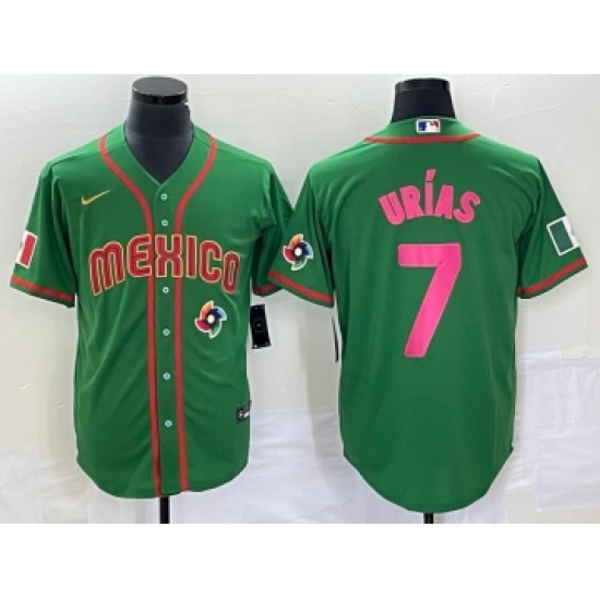 Men's Mexico Baseball #7 Julio Urias 2023 Green World Classic Stitched Jersey2