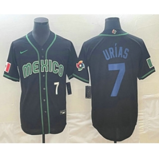 >Men's Mexico Baseball #7 Julio Urias Number 2023 Black Blue World Classic Stitched Jersey2