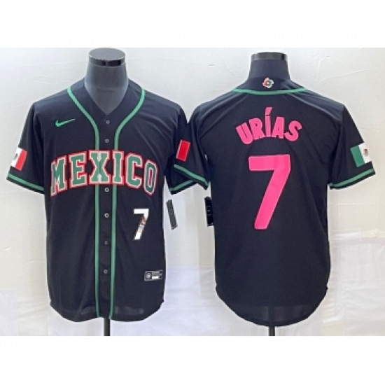Men's Mexico Baseball #7 Julio Urias Number 2023 Black Pink World Classic Stitched Jersey4
