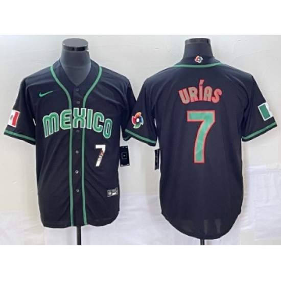 >Men's Mexico Baseball #7 Julio Urias Number 2023 Black World Classic Stitched Jersey1