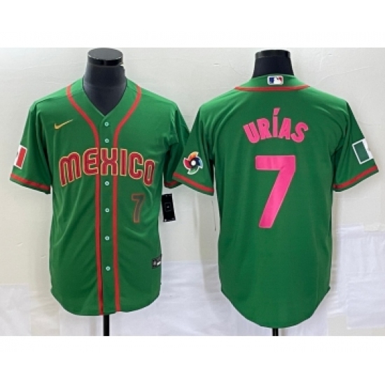 >Men's Mexico Baseball #7 Julio Urias Number 2023 Green World Classic Stitched Jersey10