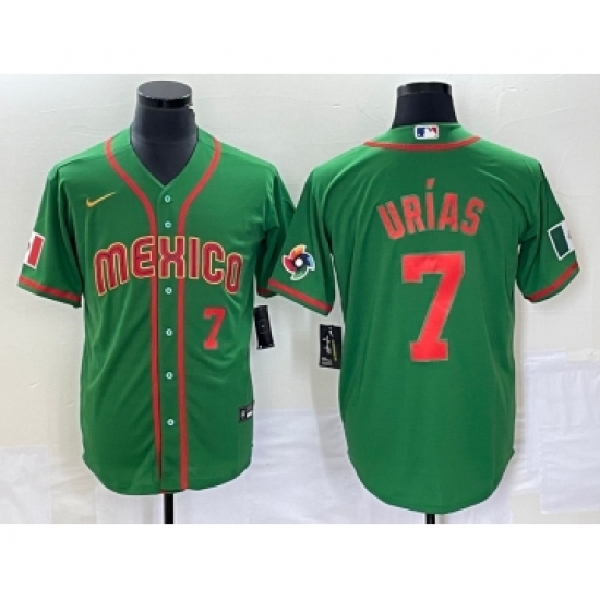 Men's Mexico Baseball #7 Julio Urias Number 2023 Green World Classic Stitched Jersey12