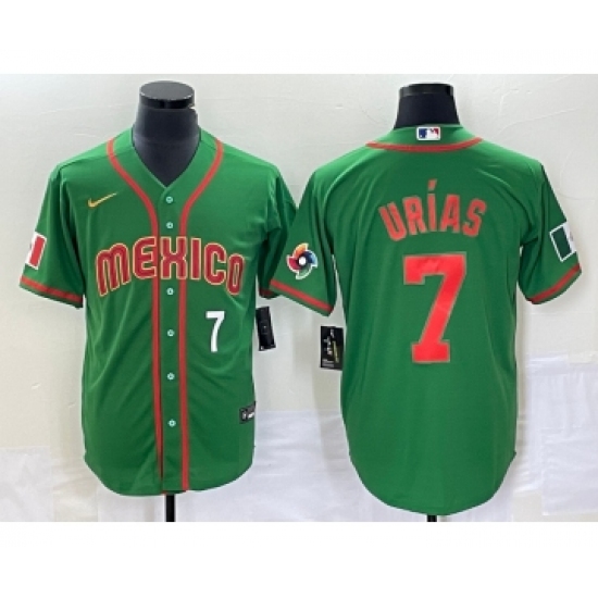 Men's Mexico Baseball #7 Julio Urias Number 2023 Green World Classic Stitched Jersey