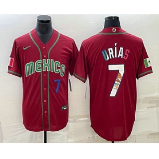 Women's Mexico Baseball #7 Julio Urias Number 2023 Red World Baseball Classic Stitched Jersey6