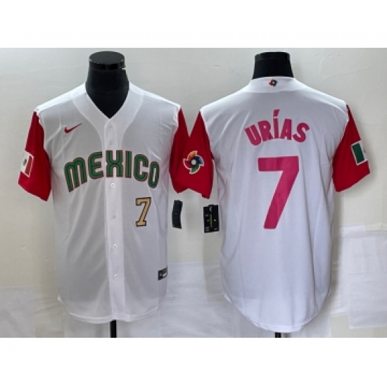 Men's Mexico Baseball #7 Julio Urias Number 2023 White Red World Classic Stitched Jersey 34