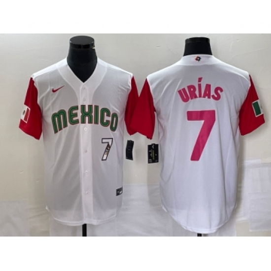 Men's Mexico Baseball #7 Julio Urias Number 2023 White Red World Classic Stitched Jersey 29