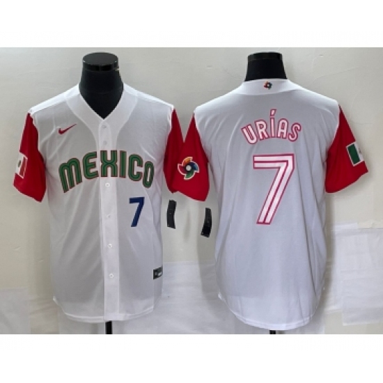 Men's Mexico Baseball #7 Julio Urias Number 2023 White Red World Classic Stitched Jersey 44