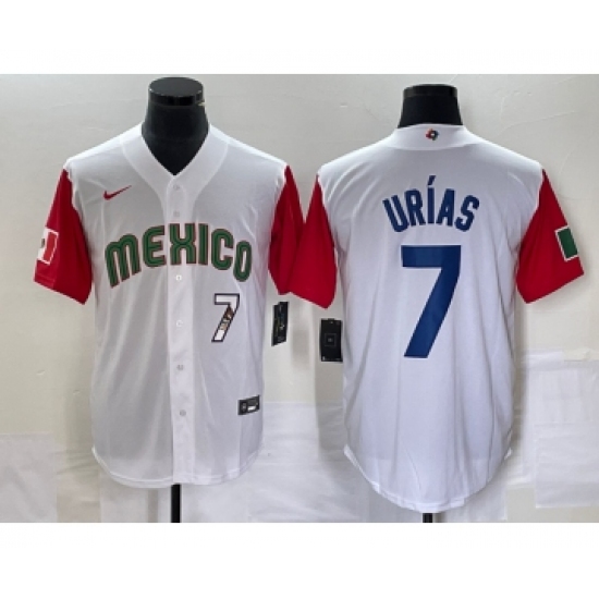 Men's Mexico Baseball #7 Julio Urias Number 2023 White Red World Classic Stitched Jersey