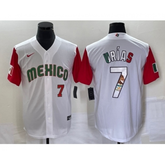 Men's Mexico Baseball #7 Julio Urias Number 2023 White Red World Classic Stitched Jersey10
