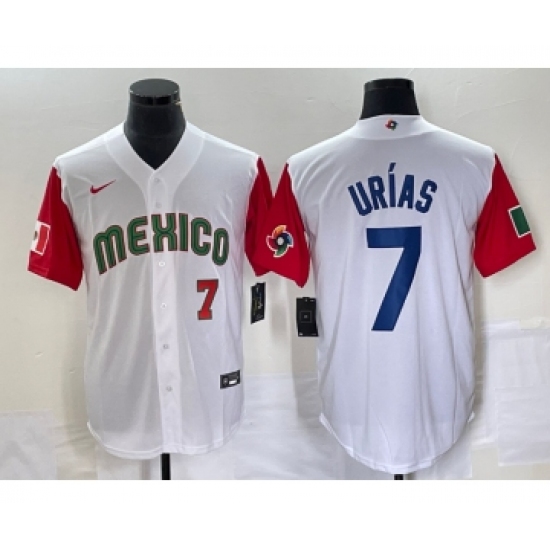 Men's Mexico Baseball #7 Julio Urias Number 2023 White Red World Classic Stitched Jersey3