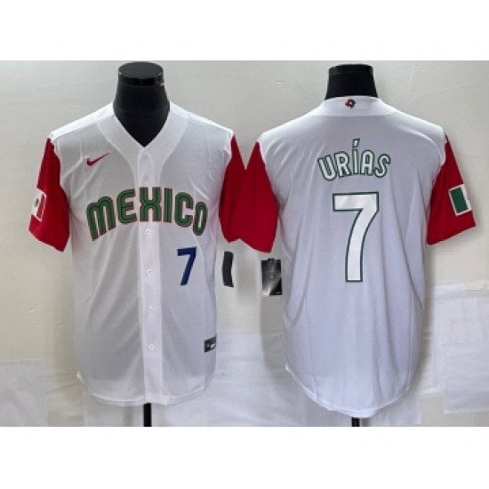 >Men's Mexico Baseball #7 Julio Urias Number 2023 White Red World Classic Stitched Jersey33