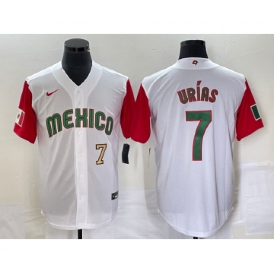 >Men's Mexico Baseball #7 Julio Urias Number 2023 White Red World Classic Stitched Jersey50