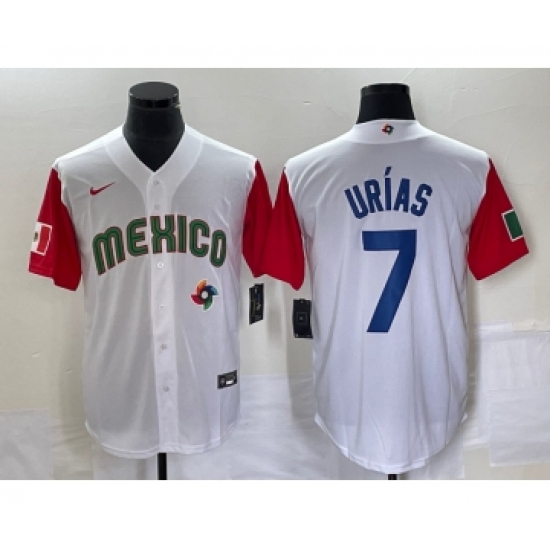 Men's Mexico Baseball #7 Julio Urias 2023 White World Baseball Classic Stitched Jersey