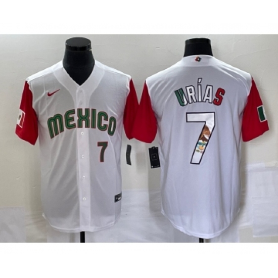 Men's Mexico Baseball #7 Julio Urias Number 2023 White Red World Classic Stitched Jersey 48