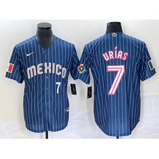 Men's Mexico Baseball #7 Julio Urias Number Navy Blue Pinstripe 2020 World Series Cool Base Nike Jersey4
