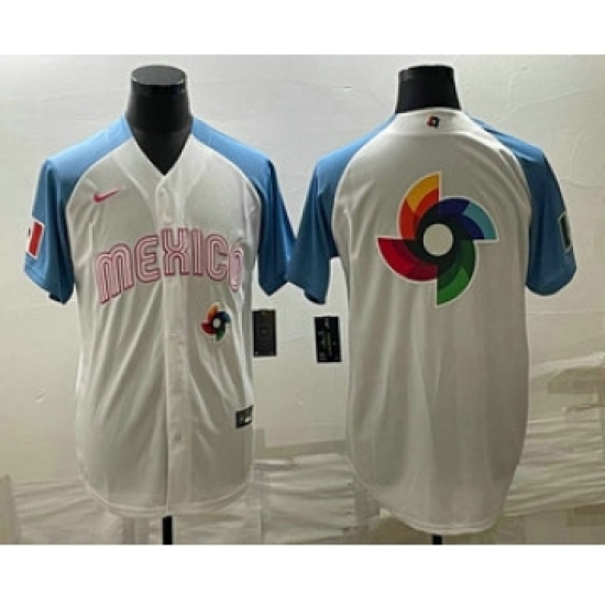Men's Mexico Baseball Big Logo 2023 White Blue World Classic Stitched Jersey