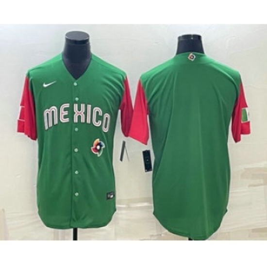 Men's Mexico Baseball Blank 2023 Green World Classic Stitched Jersey