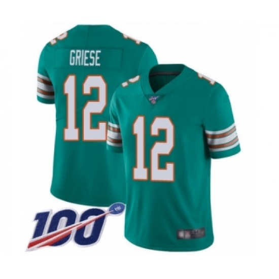 Men's Miami Dolphins #12 Bob Griese Aqua Green Alternate Vapor Untouchable Limited Player 100th Season Football Jersey