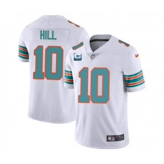 >Men's Miami Dolphins 2022 #10 Tyreek Hill White With 2-star C Patch Rush Color Stitched Football Jerse