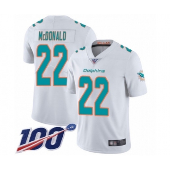 >Men's Miami Dolphins #22 T.J. McDonald White Vapor Untouchable Limited Player 100th Season Football Jersey