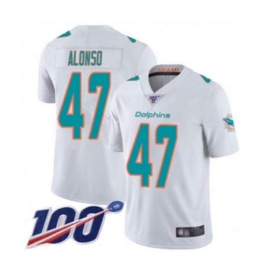 Men's Miami Dolphins #47 Kiko Alonso White Vapor Untouchable Limited Player 100th Season Football Jersey