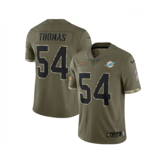 >Men's Miami Dolphins #54 Zach Thomas 2022 Olive Salute To Service Limited Stitched Jersey