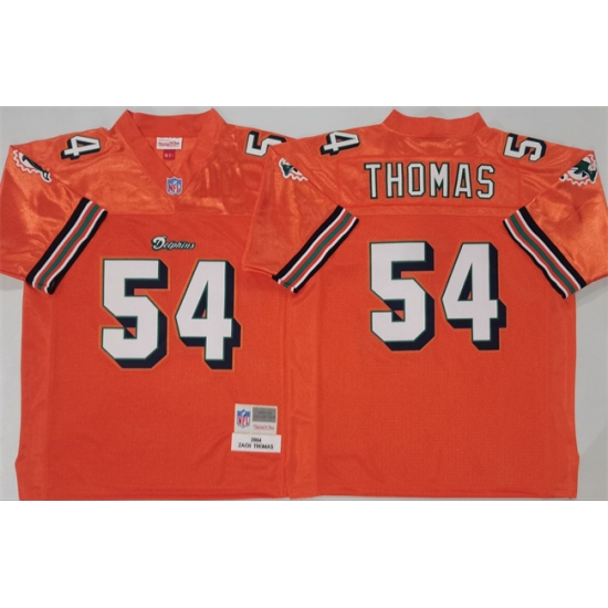 >Men's Miami Dolphins #54 Zach Thomas Orange Throwback Stitched Football Jersey