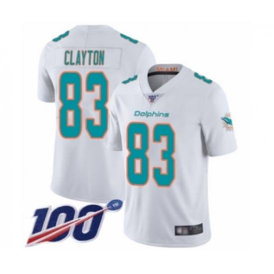 >Men's Miami Dolphins #83 Mark Clayton White Vapor Untouchable Limited Player 100th Season Football Jersey