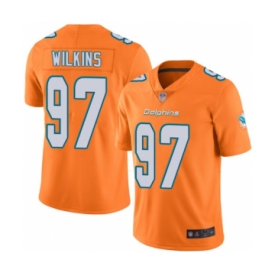 >Men's Miami Dolphins #97 Christian Wilkins Limited Orange Rush Vapor Untouchable Football Jersey