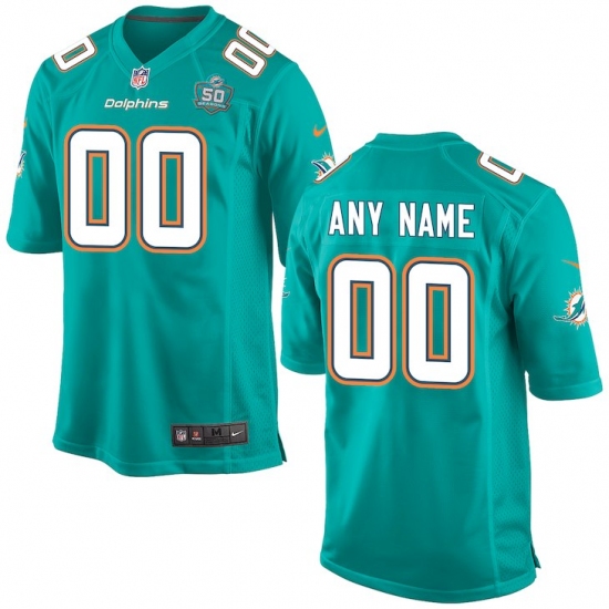>Men's Miami Dolphins Nike Aqua Custom Patch Game Jersey
