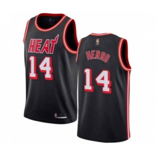 >Men's Miami Heat #14 Tyler Herro Authentic Black Fashion Hardwood Classics Basketball Jersey