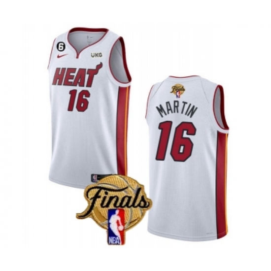 Men's Miami Heat #16 Caleb Martin White 2023 Finals Association Edition With NO.6 Stitched Basketball Jersey