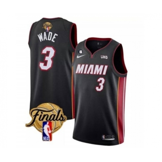 Men's Miami Heat #3 Dwyane Wade Black 2023 Finals Icon Edition With NO.6 Stitched Basketball Jersey