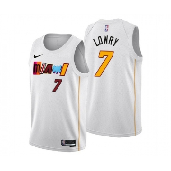 >Men's Miami Heat #7 Kyle Lowry 2022-23 White City Edition Stitched Jersey