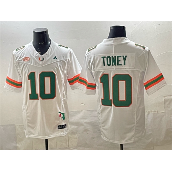 Men's Miami Hurricanes #10 Malachi Toney White F.U.S.E. Florida Patch Stitched Football Jersey