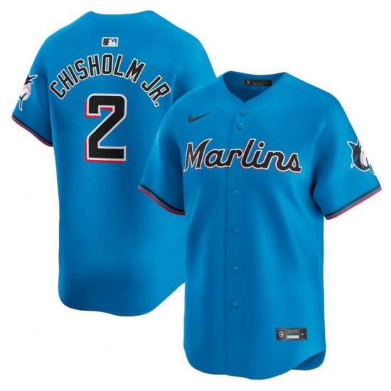 >Men's Miami Marlins #2 Jazz Chisholm Jr. Blue Limited Stitched Baseball Jersey