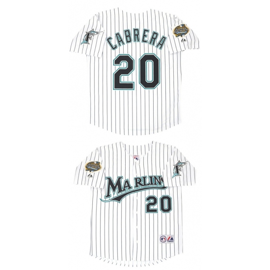 Men's Miami Marlins #20 Miguel Cabrera White 2003 Throwback Stitched Baseball Jersey