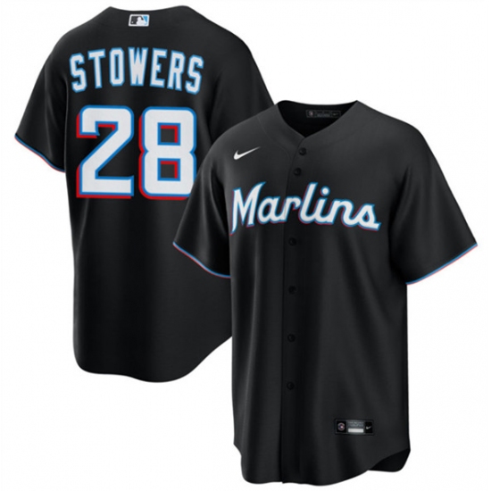 Home>MLB>Miami Marlins>Men's Miami Marlins #28 Kyle Stowers Black Cool Base Stitched Baseball Jersey
