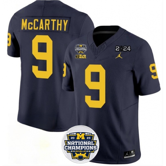 Men's Michigan Wolverines #9 J.J. McCarthy 2024 F.U.S.E. Navy National Championship Stitched Jersey