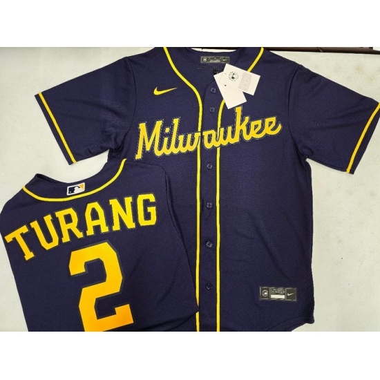 Men's Milwaukee Brewers #2 Brice Turang Navy Blue Stitched MLB Cool Base Nike Jersey