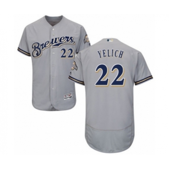 Men's Milwaukee Brewers #22 Christian Yelich Grey Road Flex Base Authentic Collection Baseball Player Jersey