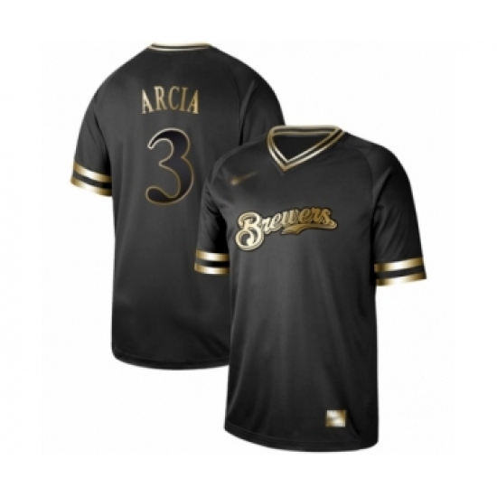 Men's Milwaukee Brewers #3 Orlando Arcia Authentic Black Gold Fashion Baseball Jersey