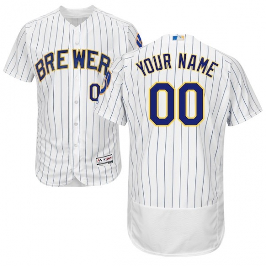 Men's Milwaukee Brewers Majestic Alternate White/Royal Flex Base Authentic Collection Custom Jersey