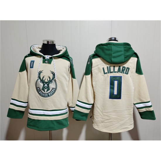 >Men's Milwaukee Bucks #0 Damian Lillard Cream Lace-Up Pullover Hoodie