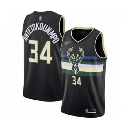 Men's Milwaukee Bucks #34 Giannis Antetokounmpo Authentic Black Finished Basketball Jersey - Statement Edition