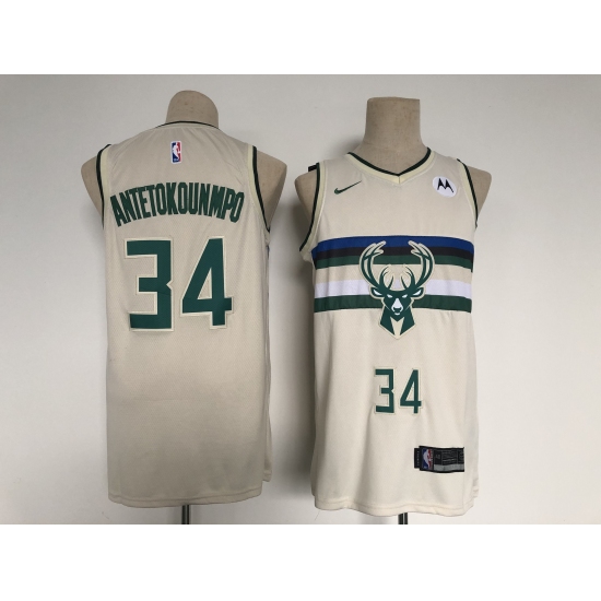 Men's Milwaukee Bucks #34 Giannis Antetokounmpo Swingman Cream Basketball Jersey - 2019 20 City Edition