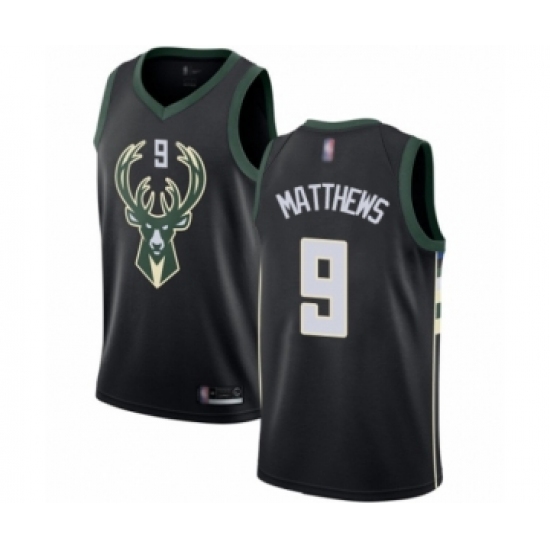 >Men's Milwaukee Bucks #9 Wesley Matthews Authentic Black Basketball Jersey - Statement Edition