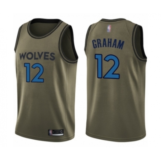 Men's Minnesota Timberwolves #12 Treveon Graham Swingman Green Salute to Service Basketball Jersey