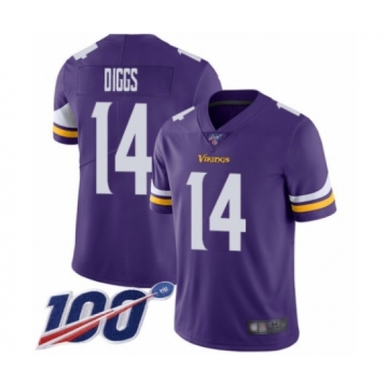 Men's Minnesota Vikings #14 Stefon Diggs Purple Team Color Vapor Untouchable Limited Player 100th Season Football Jersey